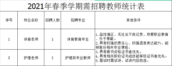 因学校工作需要,经学校领导协商,现决定面向社会公开招聘工作人员数名,现将招聘事宜公告如下: