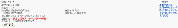 申请人登录网上申报系统后,可以查看其教师资格认定申请各时间段的状态。