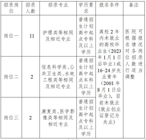 因医院发展需要,现公开招录见习岗人员15名,现将有关事宜公告如下: