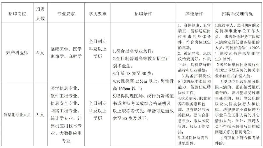(2)应聘者须提供证件材料:本人有效身份证、个人简历(自荐表)、毕业证书(学位证书)、在校学习成绩单、资格证书及执 业证书、学校荣誉证书等相关证件原件及复印件一份;2024年应届毕业生须携带《就业推荐表》原件和复印件一份,现场报名提交的相关证件原件,现场审查后退回本人 。