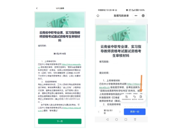 已在中小学教师资格考试网 http://ntce.neea.edu.cn 报名提交审核,且考区选择为“昆明冶金高等专科学校考区” 的考生,拍照上传资格审核所需的证件(证明) 材料,材料 准备按照《云南省 2025 年上半年中小学教师资格考试(面 试)公告》的要求执行,上传单个文件大小不超过 5M。具体 操作指引和金山文档小程序二维码详见附件,请考生务必对 照指引进行操作。