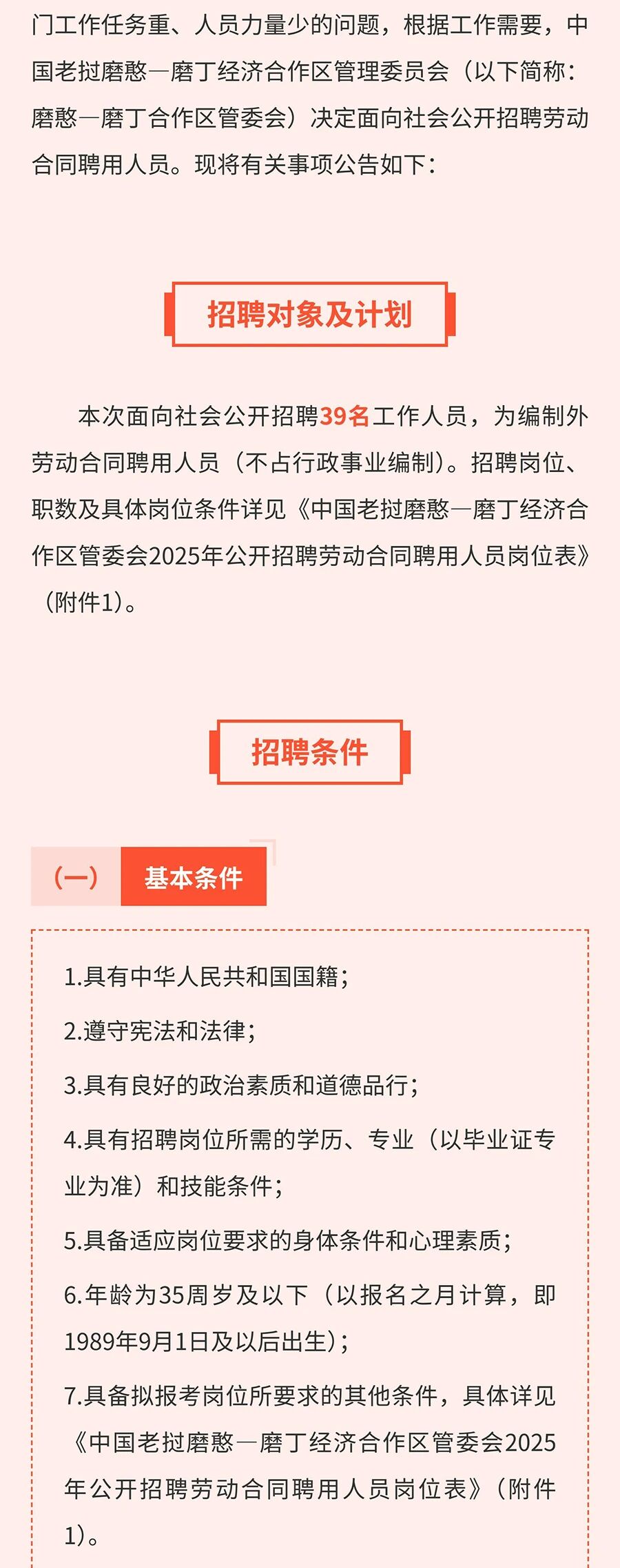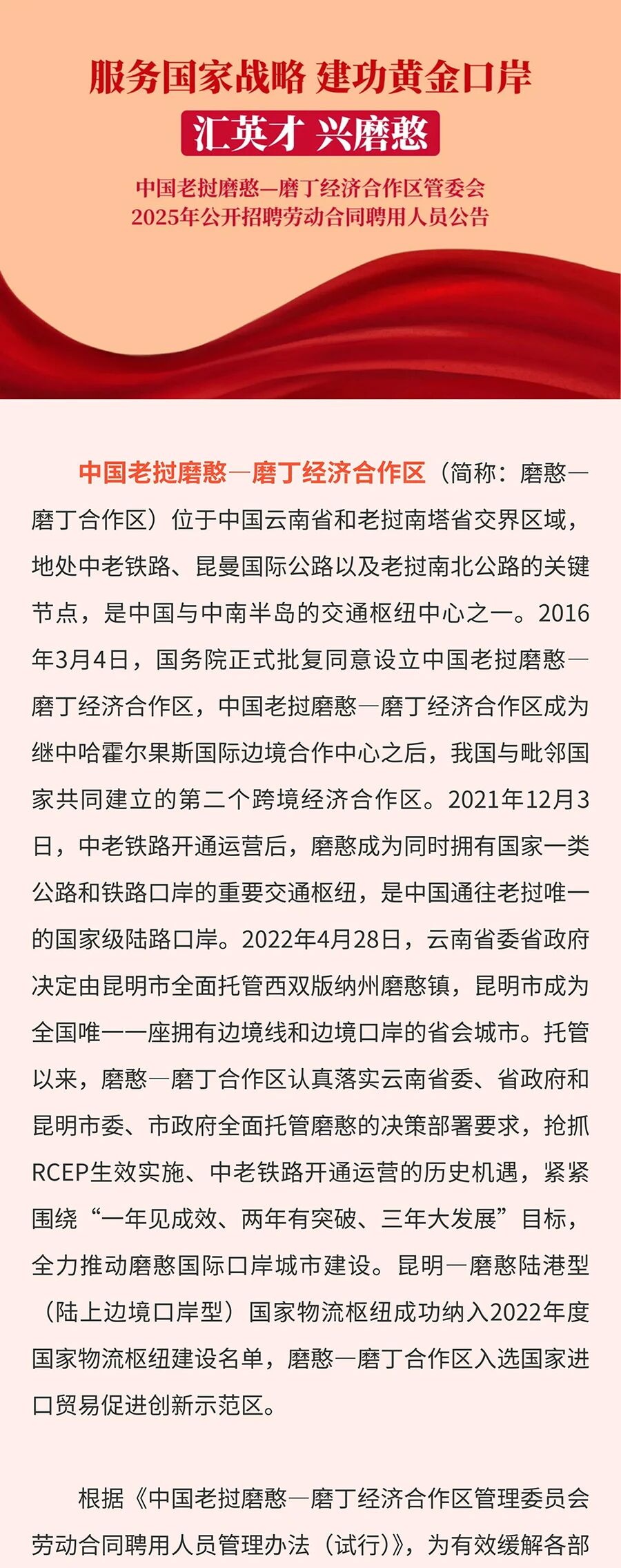 2025年中国老挝磨憨—磨丁经济合作区管委会招聘劳动合同聘用人员公告