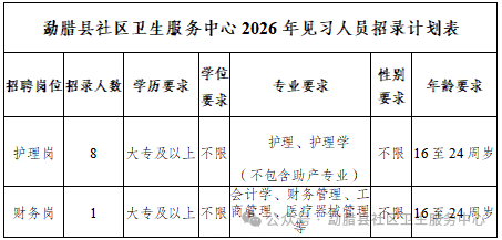 勐腊县社区卫生服务中心关于2026年招聘见习岗工作人员公告