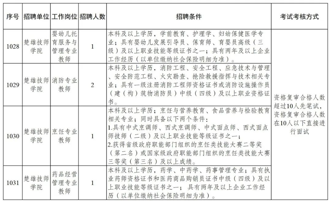 楚雄技师学院2026年急需紧缺人才招聘公告