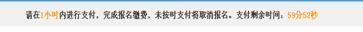 第二步:信息无误后,点击上图中“在线支付”按钮,进行网上缴费(网上支付的时限为网上报名后1个小时内,超时系统自动取消订单,考生本次报名无效)。在线支付目前只支持银联支付方式。