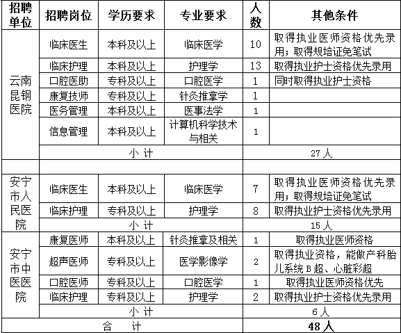 安宁市医共体2018年编制外工作人员招聘实施办法