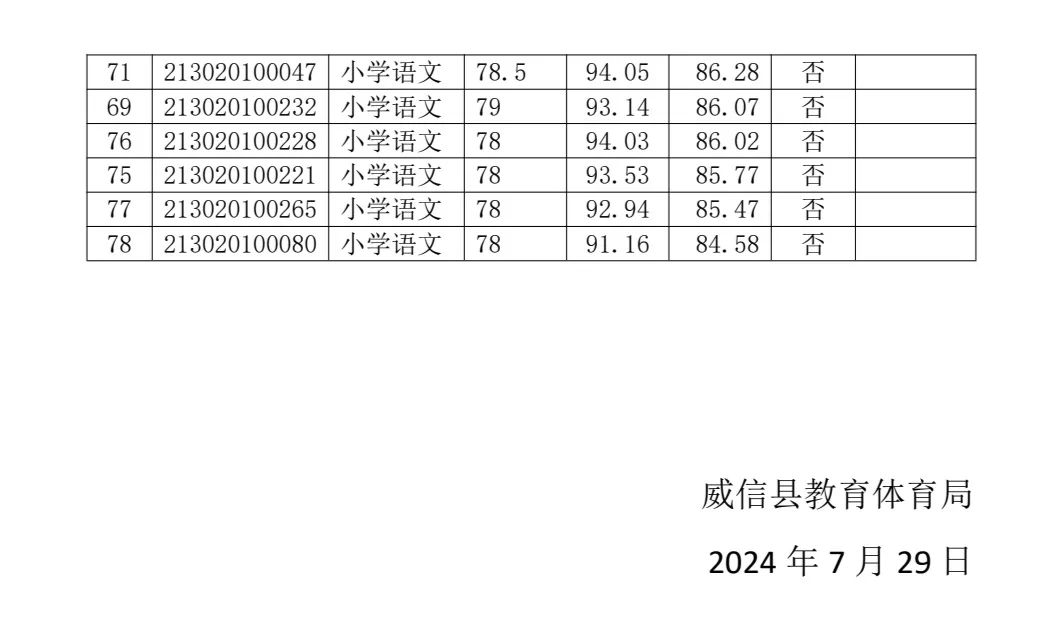 2024年昭通市威信县中央特岗教师招聘面试成绩及后续相关工作通告