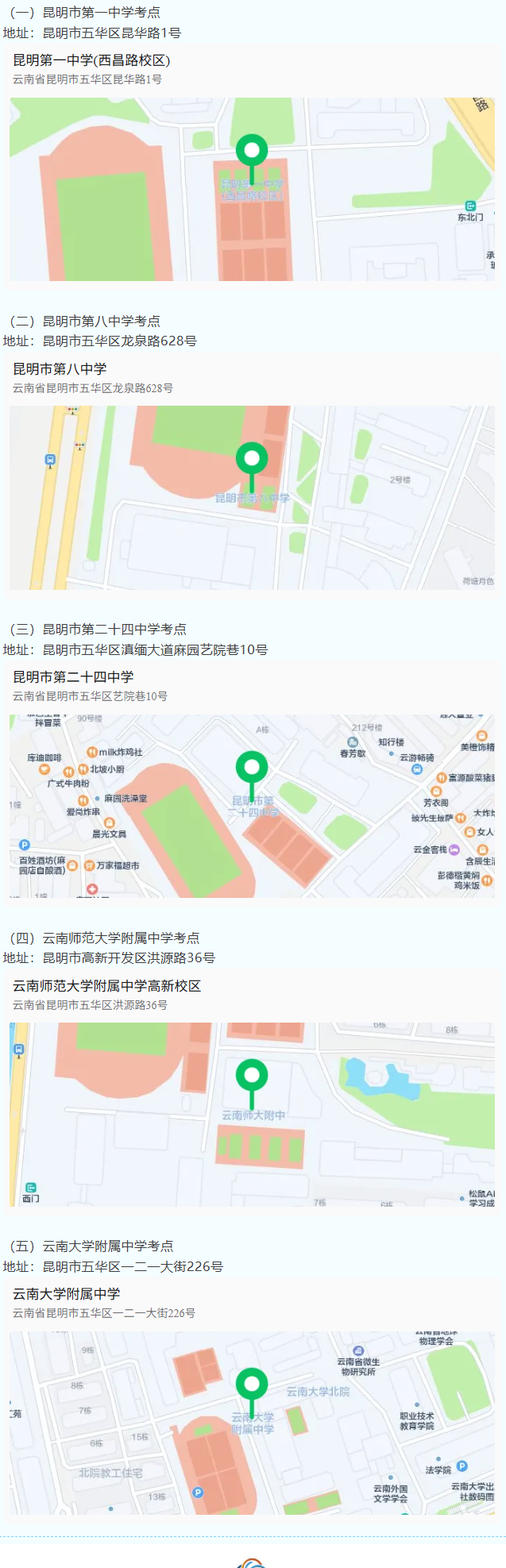 本次笔试五华考区共设置5个考点,具体考点和考场详见准考证。