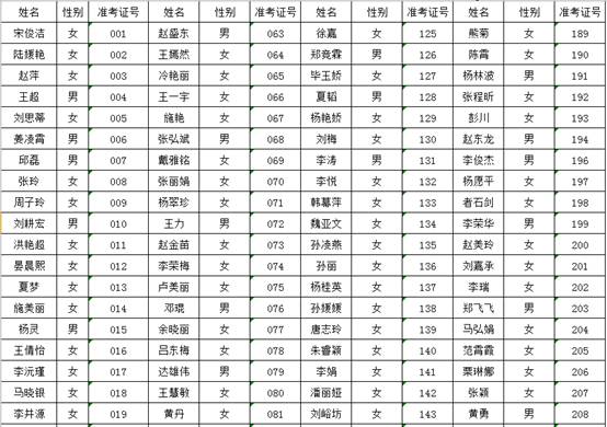 请名单上人员携带身份证,于6月19日到青云街道办事处为民服务中心(一楼),凭身份证证号领取准考证。考试时间调整为6月28日(因端午节放假调整),相关信息见准考证,如需咨询请拨打63825563、63801830。考试人员名单见下表: