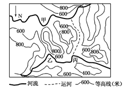 (2) 现拟在①、②、③、④四地中选址布局一个大型批发市场,最佳选址是 地;从环境角度考虑,化学工业布局在甲处的合理性体现在 、 等。