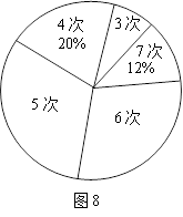 19.(10分)为了解某校九年级男生的体能情况,体育老师随机抽取部分男生进行引体向上测试,并对成绩进行了统计,绘制成图8和图9两幅尚不完整的统计图.